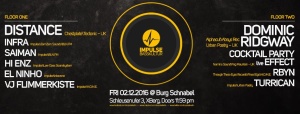 Line Up Floor One: Distance (Chestplate / TectonicRecordings - UK) INFRA (Impulse Berlin / ZamZam Sounds / BLN.FM) Saiman (Impulse Berlin / Tief Frequenz Festival / BLN.FM) Hi Enz (Impulse Berlin / Low Class Soundsystem) El Ninho (Impulse Berlin / Interzone) VJ Flimmerkiste (Impulse Berlin / HOME Berlin) sound by Funktion-One (Official) Floor Two: Dominic Ridgway (Alphacut Records / Absys Records / Urban Poetry Records - UK) Cocktail Party Effect (Nomine Sound / Fog Mountain - UK) RBYN (Through These…