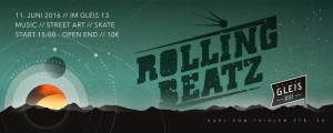 ~== ROLLING BEATZ ==~ MUSIC // STREET ART // SKATE @ GLEIS 13 11. Juni 2016 - Start: 15:00 Uhr - Eintritt: 10 € HIP HOP // DRUM & BASS // REGGAE DANCEHALL // DUB // FUNK & SOUL // POWERAMBIENT 3 Stages || über 30 Künstlers & Acts || Food & Drinks ~= MAINSTAGE OPEN AIR - Hip Hop // Dub // Funk & Soul // Ambient =~ ♬ JPATTERSSON (3000° Records / Acker Records) ♬ Die Kinder vom…