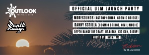 Outlook Festival Official Ulm Launch Party 2016 A Night of future Beats, wonky Hip Hop and Bass at Cabaret Eden - Ulm ____________________LINEUP_______________________ ✖ MORESOUNDS https://www.facebook.com/moresounds http://www.moresounds.net/ https://soundcloud.com/moresounds ✖ DANNY SCRILLA https://soundcloud.com/danny-scrilla https://www.facebook.com/DannyScrilla ✖ DJ SRP https://www.facebook.com/djsrp https://www.facebook.com/illtiz.tv ✖ ReDraft https://www.facebook.com/redraftmusic https://soundcloud.com/redraft https://pro.beatport.com/artist/redraft/218744 ✖ HP.Ritch https://www.facebook.com/hpritchmusic https://soundcloud.com/hpritchmusic https://pro.beatport.com/artist/hp-ritch/524855 ✖ Kid Kun https://www.facebook.com/kidkunmusic https://soundcloud.com/kidkunmusic ✖ MC Jaysmit https://www.facebook.com/jaysmitmc ___________________Information____________________ ☛ Date: 18.June 2016 ☛ Venue: Cabaret Eden - Ulm ☛ Doors: 23:00 ☛ Doors: 8,- EUR ☛ Outlook Festival 2016: www.outlookfestival.com…