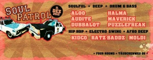 ➤SOULFUL / DEEP DRUM & BASS Aloo (durch BrokenOne ersetzt) audite Dubbalot Halma Maverick Puzzlefreak ➤SOULFUL HIP HOP / ELECTRO SWING / AFRO DEEP KidCo Moldi Ratz Baddz ➤➤ + FINGERFOOD Beginn 22:00 Uhr Four Rooms Täubchenweg 26 Web: www.fourooms.net www.facebook.com/SoulPatrolLeipzig www.soundcloud.com/aloo www.hearthis.at/audite www.hearthis.at/dubbalot www.mixcloud.com/Halma www.soundcloud.com/truempdnb www.mixcloud.com/dj-puzzlefreak www.hearthis.at/kidcommercial soundcloud.com/krizm0 www.hearthis.at/ratz-baddz
